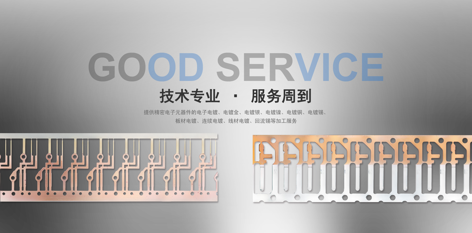 • 公司專業提供精密電子元器件的電子電鍍、電鍍金、電鍍銀、電鍍鎳、電鍍銅、電鍍錫、IGBT電鍍模塊、板材電鍍、連續電鍍、線材電鍍、回流錫等加工服務。